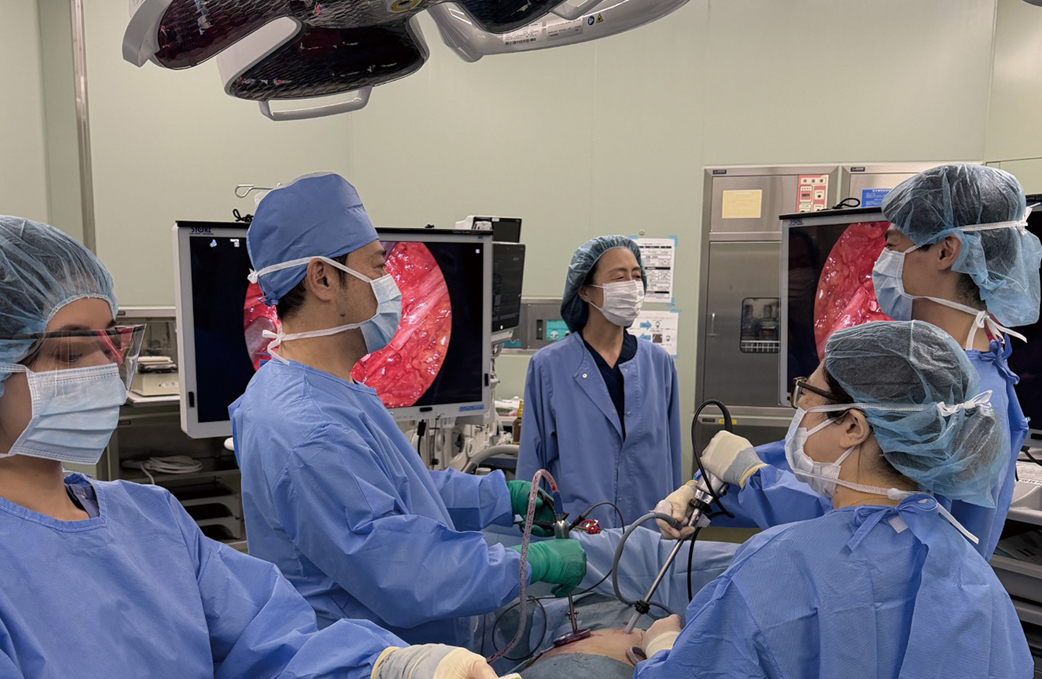 共通の画面を見ながら行う完全鏡視下手術