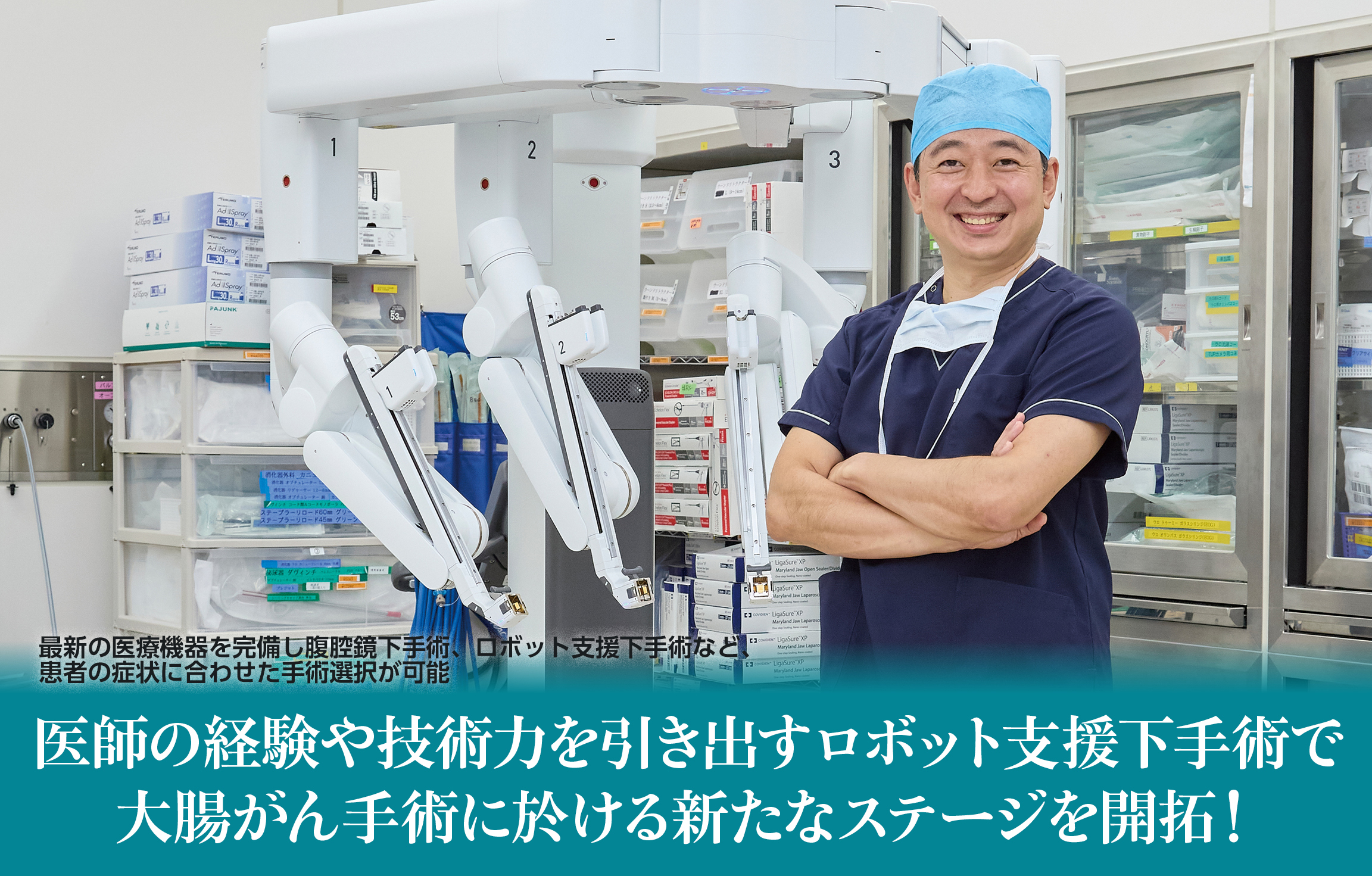 予防医療から成人病、がん治療など多岐に渡る機能を有し、24時間365日救急医療を実施。外科手術から回復期リハビリまでシームレスな受け入れ体制を整えるなど、地域医療を支えている湘南東部総合病院。特に、外科領域を中心とした同院では、最新の医療機器を積極的に導入し、高度ながん治療に力を入れている。大腸がんは従来、進行すると開腹手術や腹腔鏡下手術が行われてきたが、近年新たな術式として登場したのが、ロボット支援下手術だ。外科の中山祐次郎医師は、同手術における国内導入より5年前海外研修でこの手術法に出会い、今後手術の主流になると強く確信し、技術習得に励み臨床経験を積み上げてきたという。