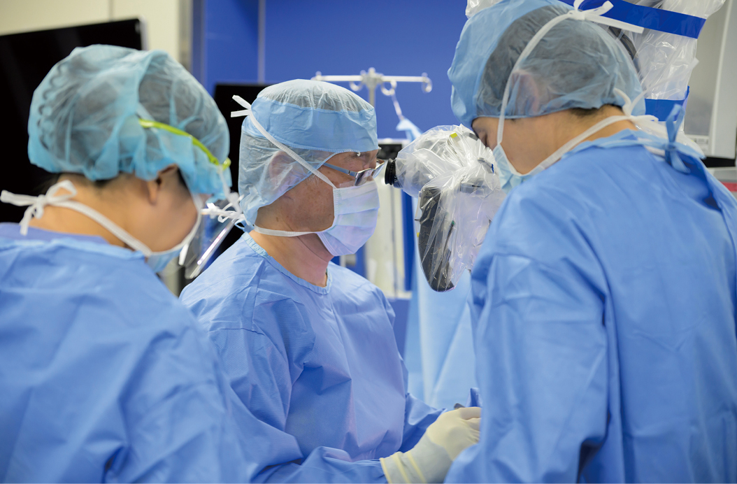 「昨年、80代の方にクリッピングとバイパスを併用した手術を行いました。大きな動脈瘤で形状も悪く、7〜8時間に及ぶ高難度症例でしたが、術後1年半が経過した現在、お会いする度に笑顔で『先生に手術してもらえて良かった』と言ってくださいます。それは、医師として大変光栄なことです」と、村井教授は微笑む。